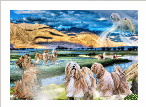 Motiv: Illustration inspiriert von tibetischen Terriern und der weiten Landschaft ihrer ursprünglichen Heimat