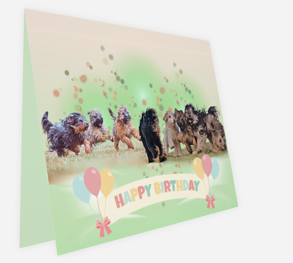 Eine Gruppe junger Hunde, voller Energie, mitten im Lauf –